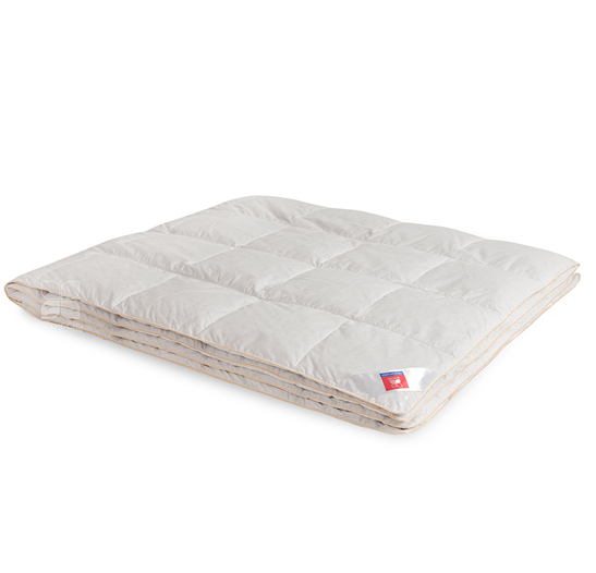 Для самых требовательных потребителей, ищущих традиционное исполнение, долговечность и комфорт. Пуховые одеяла из натурального пуходержащего белоснежного тика с мелким рисунком и шелковым кантом цвета шампань по периметру, изящно подчеркивающим форму.
